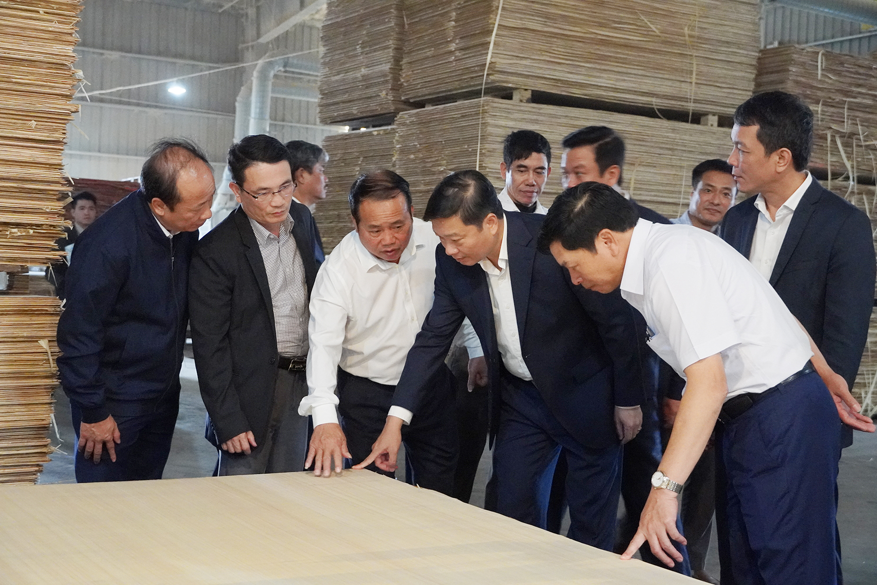 Trong buổi thăm và làm việc tại Nhà máy Sản xuất ván ép Thăng Long, Chủ tịch UBND tỉnh đã nghe lãnh đạo doanh nghiệp báo cáo tình hình hoạt động sản xuất, kinh doanh, những khó khăn, vướng mắc trong quá trình vận hành, đồng thời trực tiếp khảo sát điều kiện làm việc của người lao động. Trên cơ sở đó, Chủ tịch UBND tỉnh đã có những chỉ đạo cụ thể, yêu cầu doanh nghiệp tiếp tục ổn định sản xuất, bảo đảm an toàn lao động, nâng cao chất lượng sản phẩm và thực hiện đầy đủ các quy định về bảo vệ môi trường.