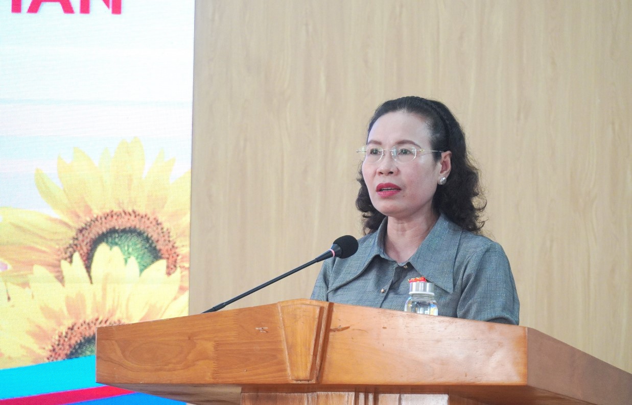 Đại biểu Ngô Nữ Quỳnh Trang, Phó Trưởng Ban Kinh tế - Ngân sách HĐND tỉnh báo cáo với các cử tri về kết quả kỳ họp thứ 5, HĐND tỉnh khóa VIII, nhiệm kỳ 2021 - 2026