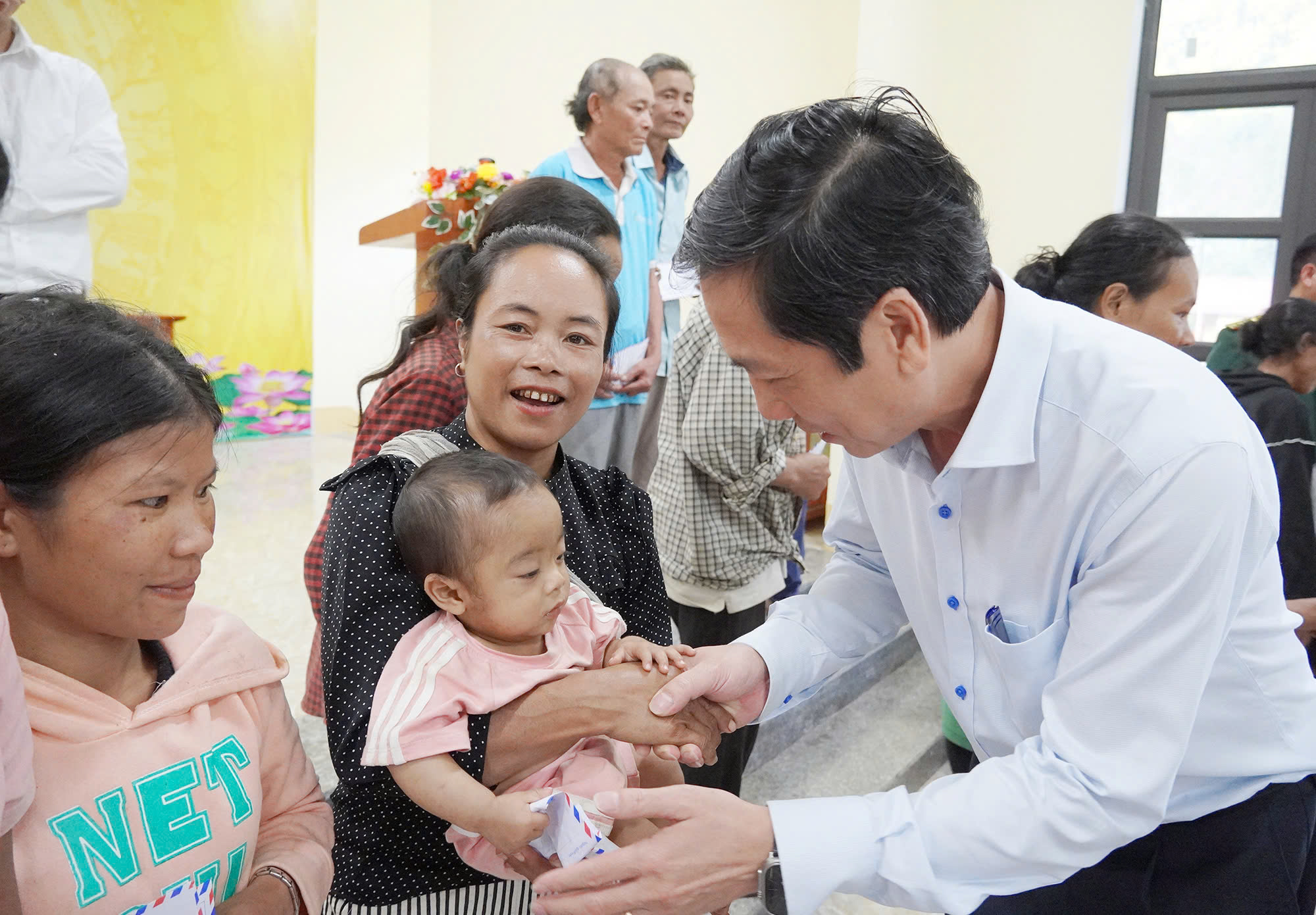 Phó Chủ tịch Thường trực UBND tỉnh trao quà cho bà con ở bản Mò O Ồ Ồ, xã Kim Phú