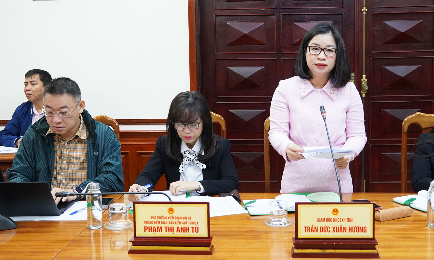 Giám đốc Chi nhánh NHCSXH tỉnh Trần Đức Xuân Hương báo cáo