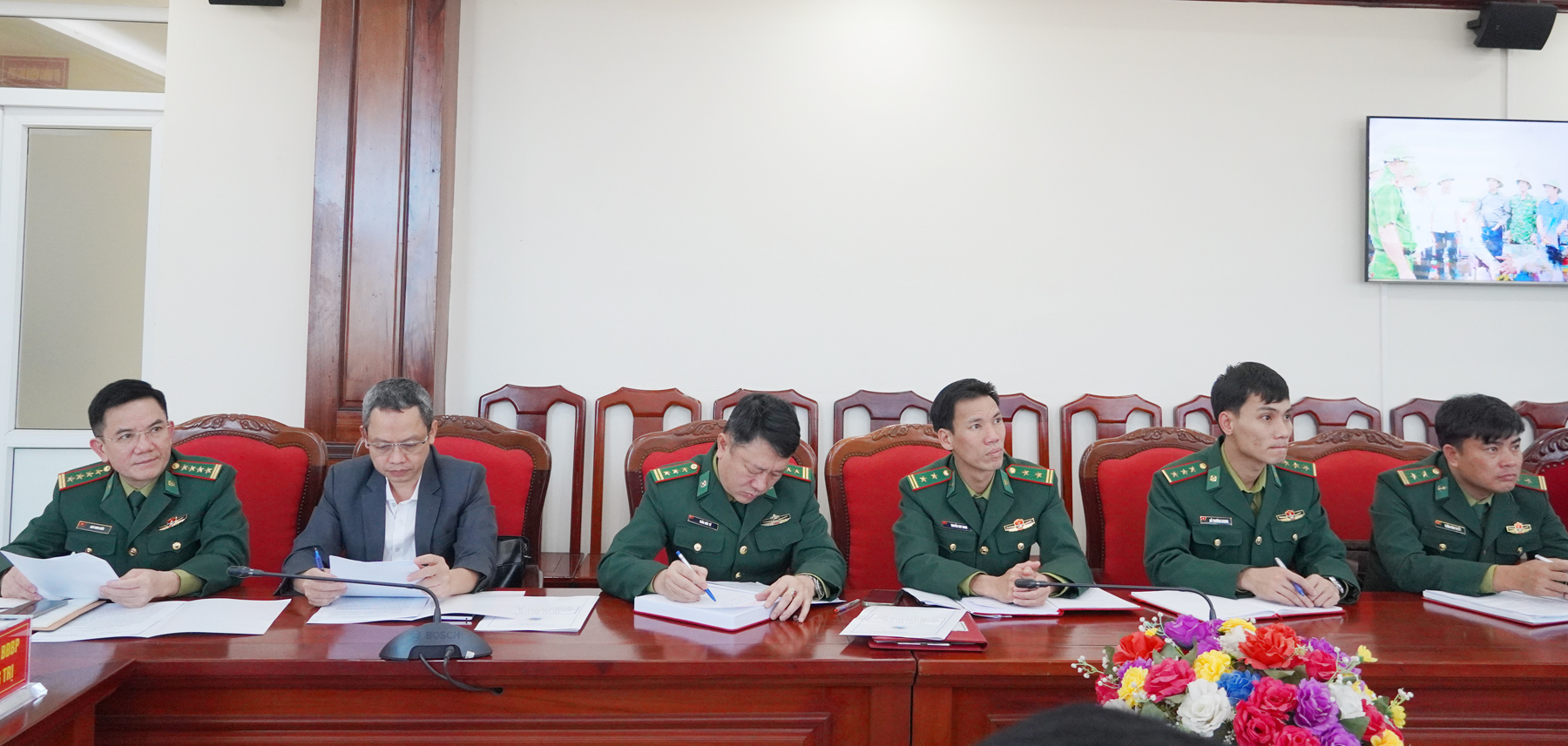 Các đại biểu tham gia hội nghị tại điểm cầu Ban Chỉ huy BĐBP tỉnh Quảng Trị