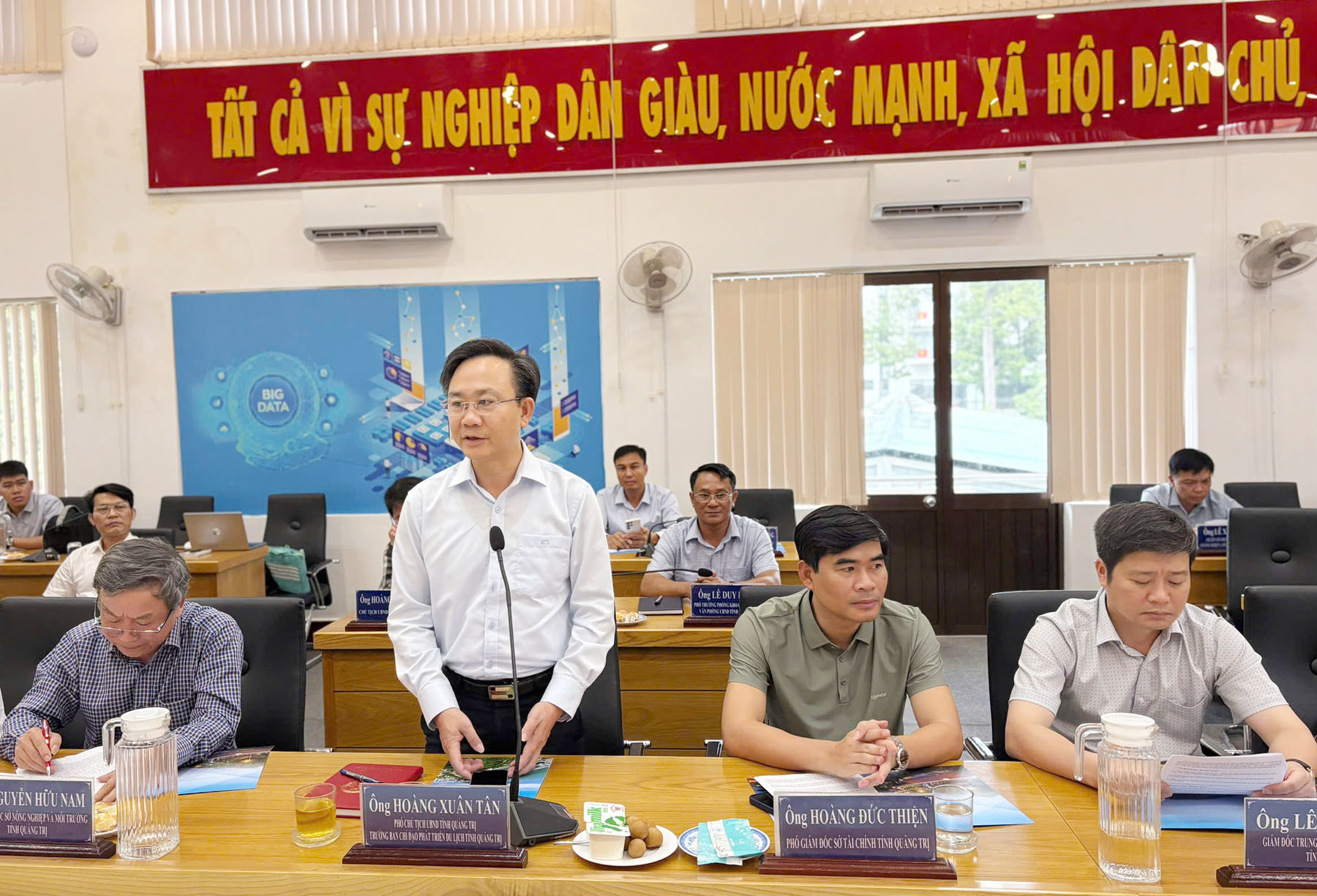 Phó Chủ tịch UBND tỉnh Quảng Trị, Trưởng ban Chỉ đạo Phát triển du lịch tỉnh Hoàng Xuân Tân trao đổi tại buổi làm việc