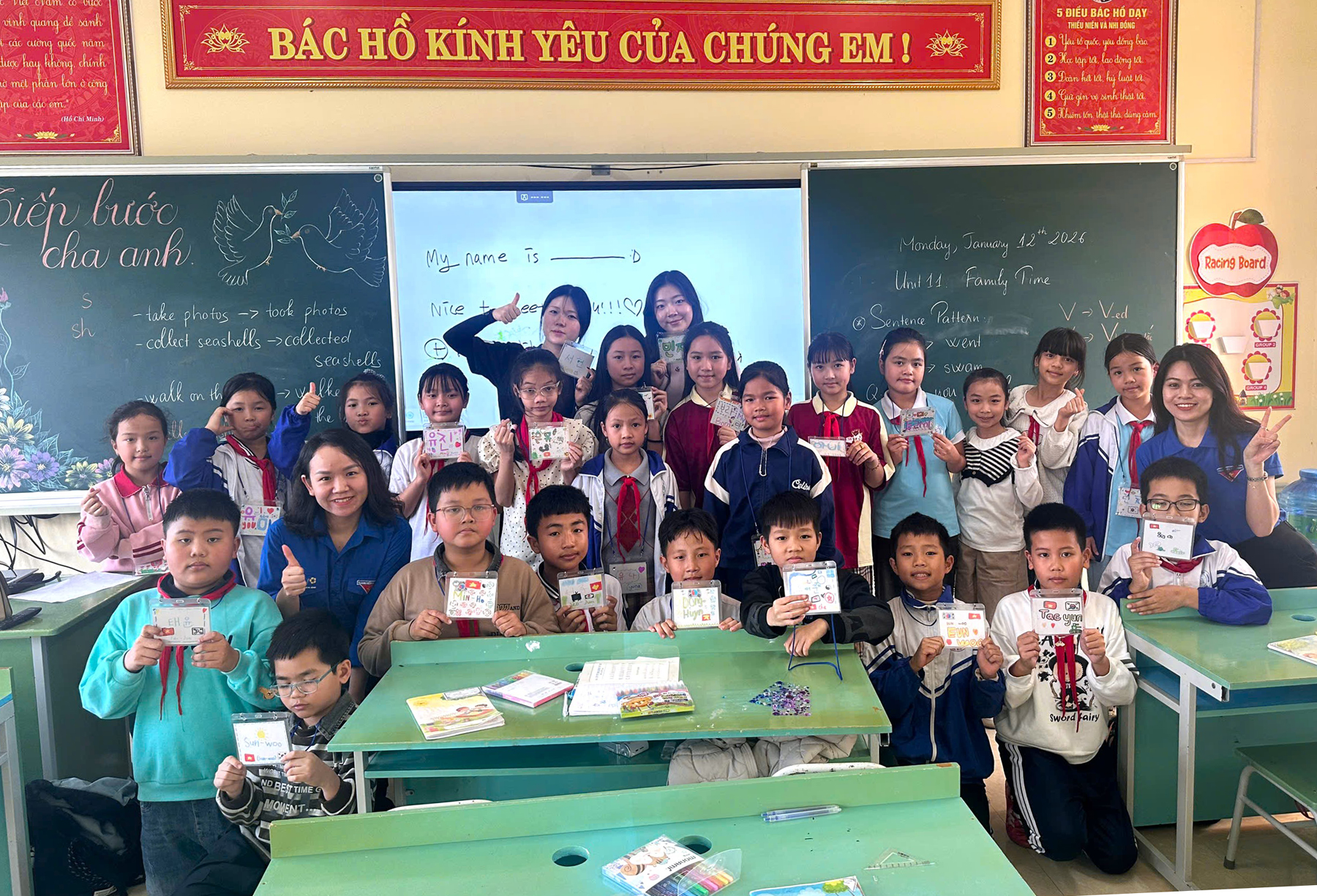 Các em học sinh hào hứng tham gia lớp học tiếng Anh