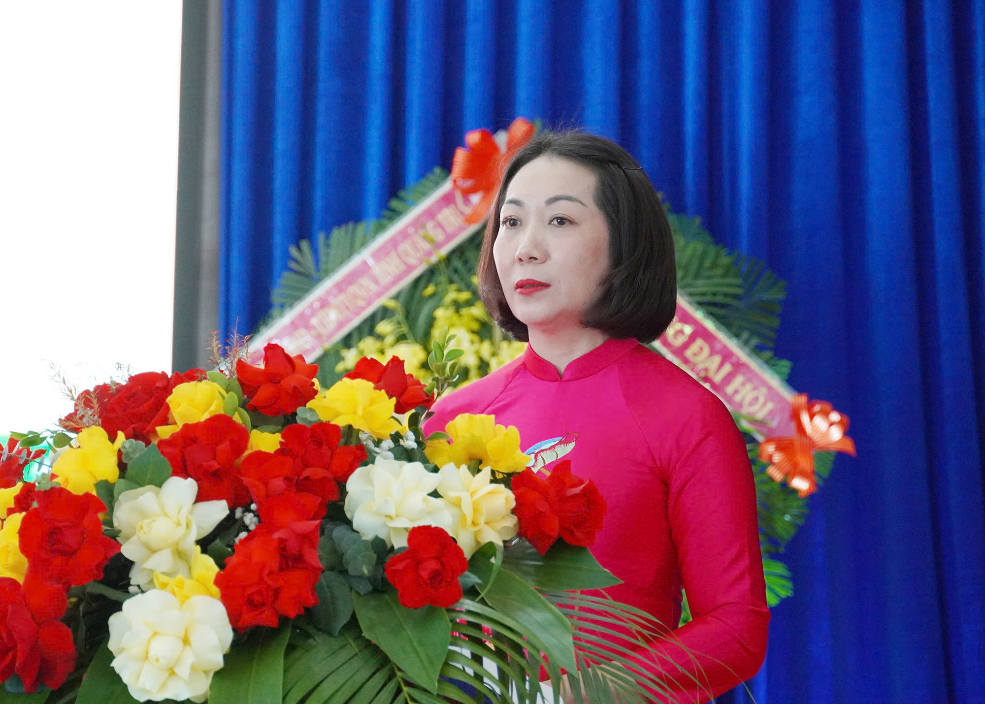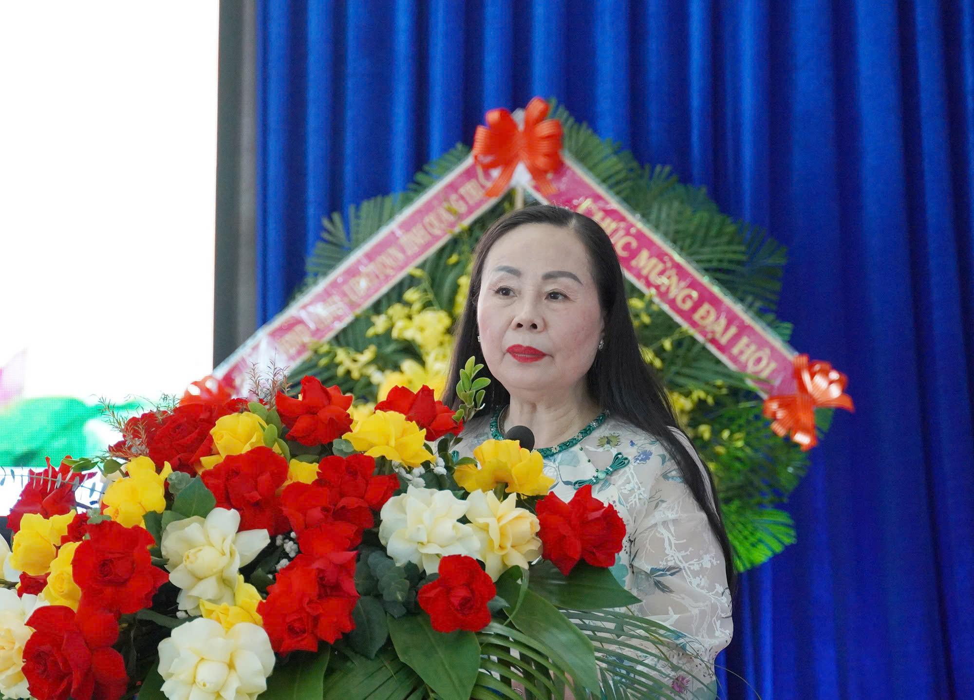 Đồng chí Lê Thị Mỹ Hiền, Phó Chủ tịch UBMTTQ Việt Nam tỉnh phát biểu tại đại hội