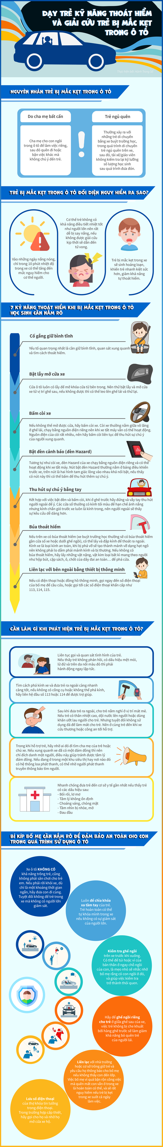 Những trường hợp trẻ em bị bỏ quên trên ô tô thường để lại hậu quả thương tâm và đáng tiếc. Sự việc có thể gặp phải bất kỳ lúc nào và bất kỳ nơi đâu nên bố mẹ rất cần trang bị cho con các kỹ năng để thoát hiểm khi vô tình bị mắc kẹt trong xe.