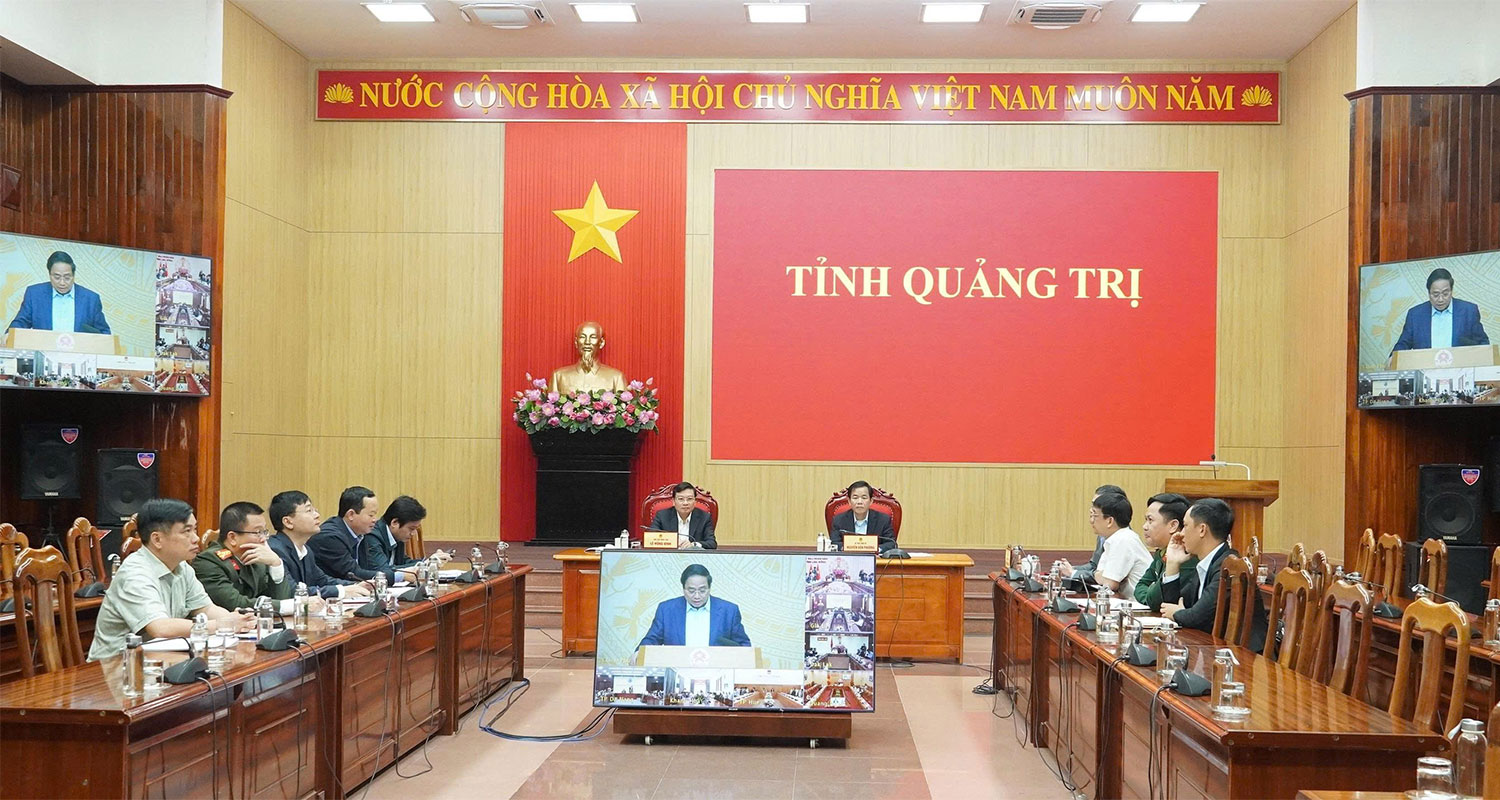 Tại điểm cầu Quảng Trị có các đồng chí: Nguyễn Văn Phương, Bí thư Tỉnh ủy; Lê Hồng Vinh, Phó Bí thư Tỉnh ủy, Chủ tịch UBND tỉnh; Phan Phong Phú, Phó Chủ tịch UBND tỉnh cùng đại diện lãnh đạo các sở, ngành liên quan.