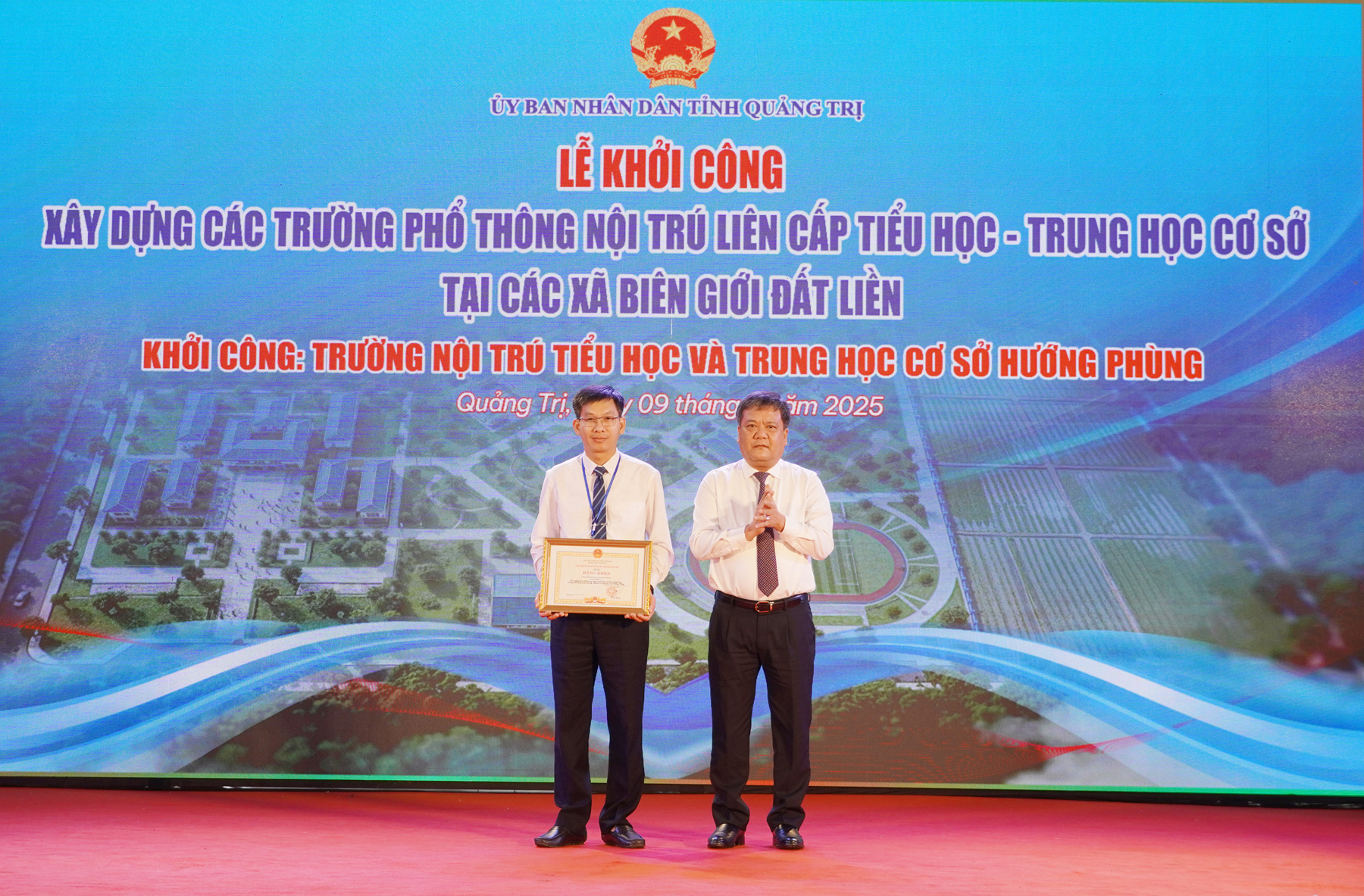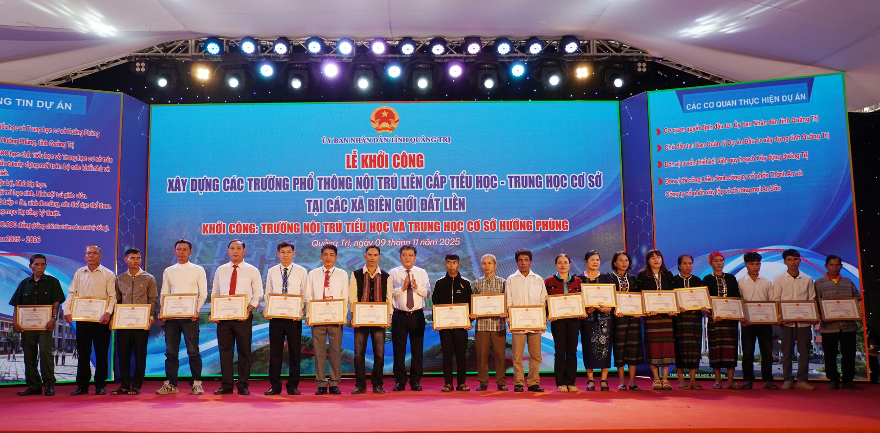 Cũng tại buổi lễ, Chủ tịch UBND tỉnh Trần Phong đã trao tặng Bằng khen cho 1 tập thể và 17 cá nhân có thành tích xuất sắc trong công tác giải phóng mặt bằng phục vụ Dự án xây dựng Trường nội trú Tiểu học và Trung học cơ sở Hướng Phùng.