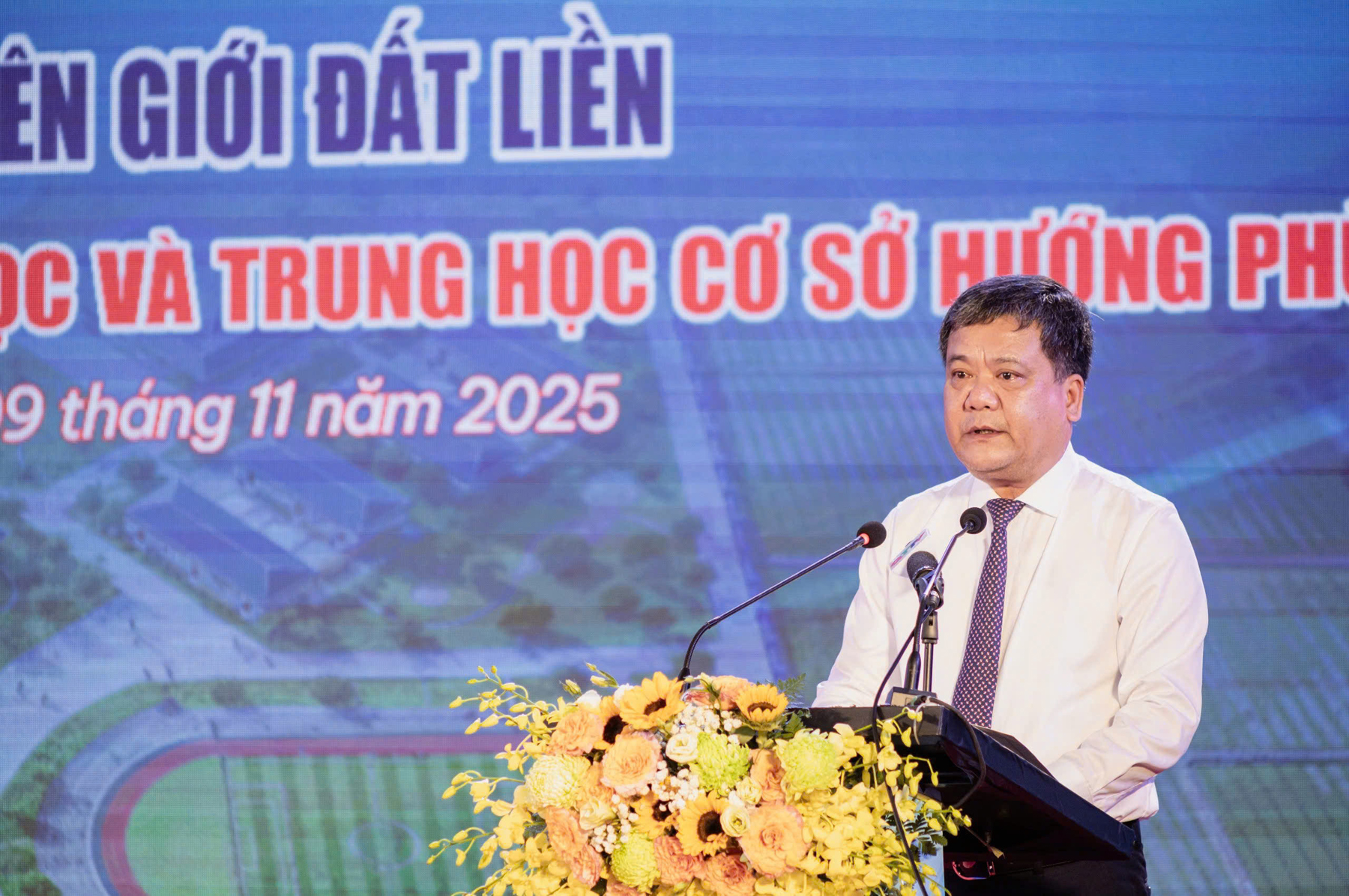 Phát biểu tại buổi lễ, thay mặt lãnh đạo Chính phủ, Bộ trưởng Bộ Nông Nghiệp và Môi trường Trần Đức Thắng nhấn mạnh: Việc xây dựng ngôi trường có ý nghĩa quan trọng trong việc cụ thể hóa chủ trương của Đảng, Nhà nước về phát triển hệ thống trường học ở khu vực biên giới, vùng sâu, vùng xa, mở ra cơ hội học tập tốt hơn cho con em đồng bào nơi phên dậu Tổ quốc. Đồng chí khẳng định công trình này không chỉ là đầu tư về cơ sở vật chất mà còn là sự tri ân, sẻ chia và niềm tin gửi đến thầy cô, học trò và đồng bào vùng biên giới - những người đang ngày đêm giữ cho đất nước yên bình từ những vùng đất xa xôi nhất.