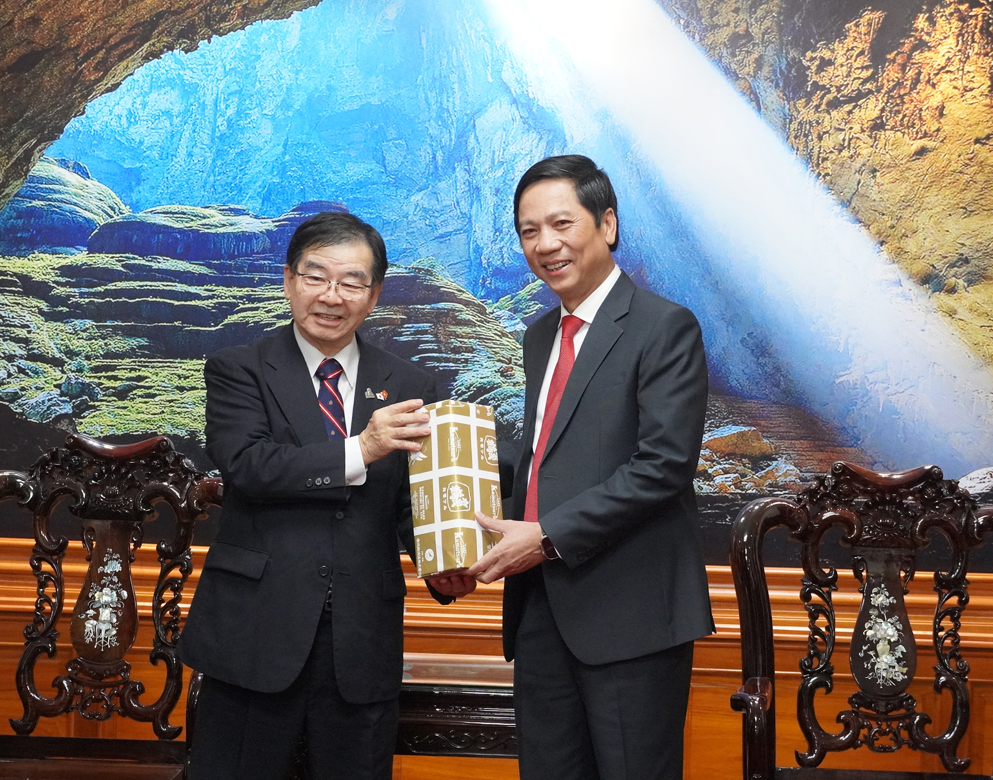 Phó Chủ tịch Thường trực UBND tỉnh Hoàng Nam tặng quà lưu niệm cho Chủ tịch HVPF