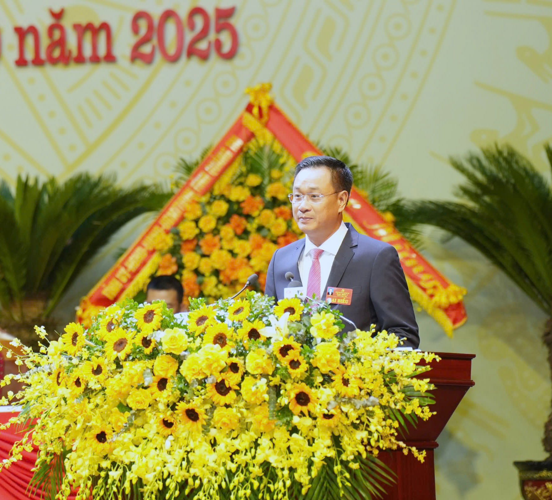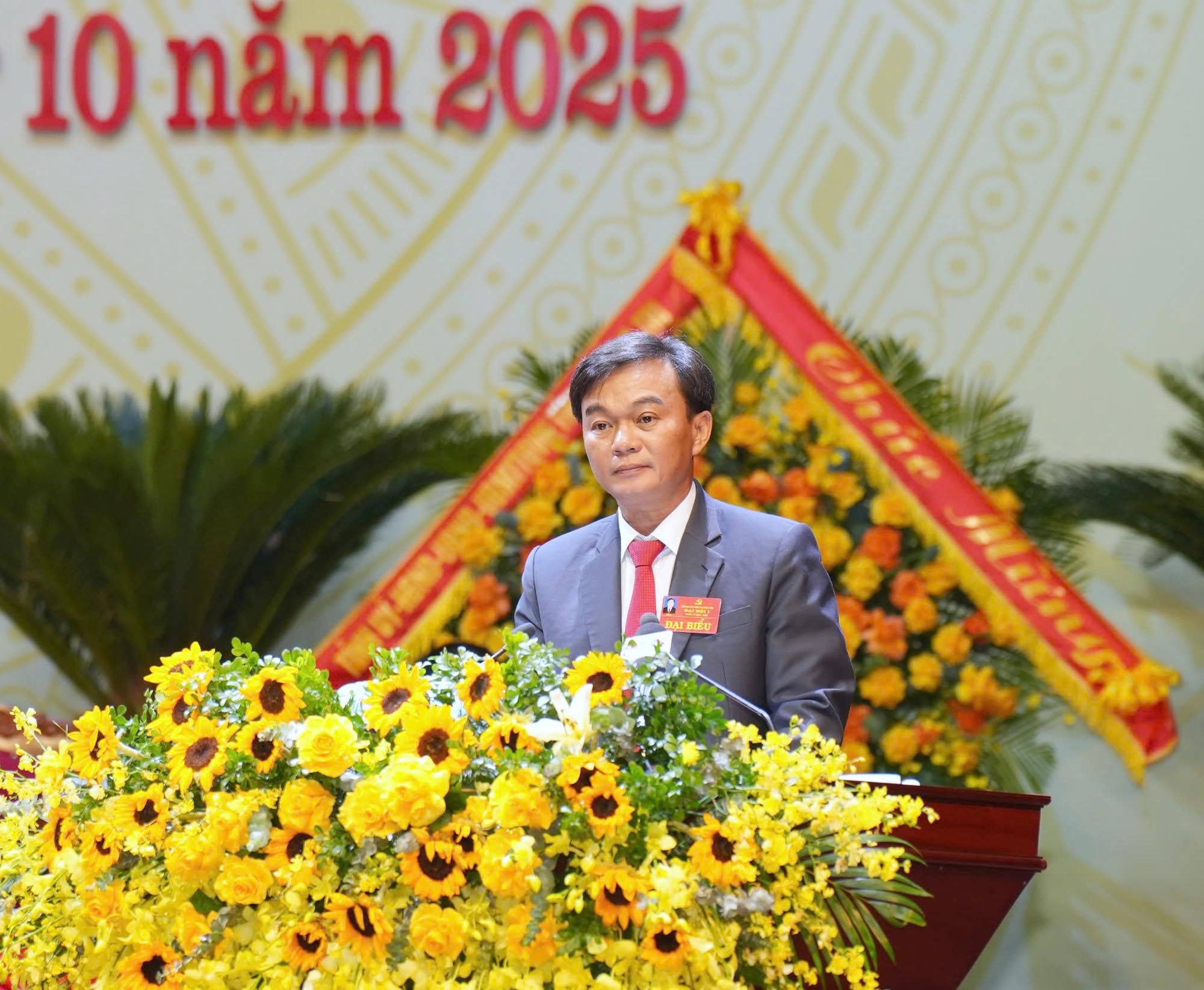 Đồng chí Nguyễn Hoài Nam, Tỉnh ủy viên, Chánh Văn phòng UBND tỉnh, Trưởng Đoàn Thư ký Đại hội trình bày dự thảo Nghị quyết Đại hội Đảng bộ tỉnh lần thứ I, nhiệm kỳ 2025 - 2030