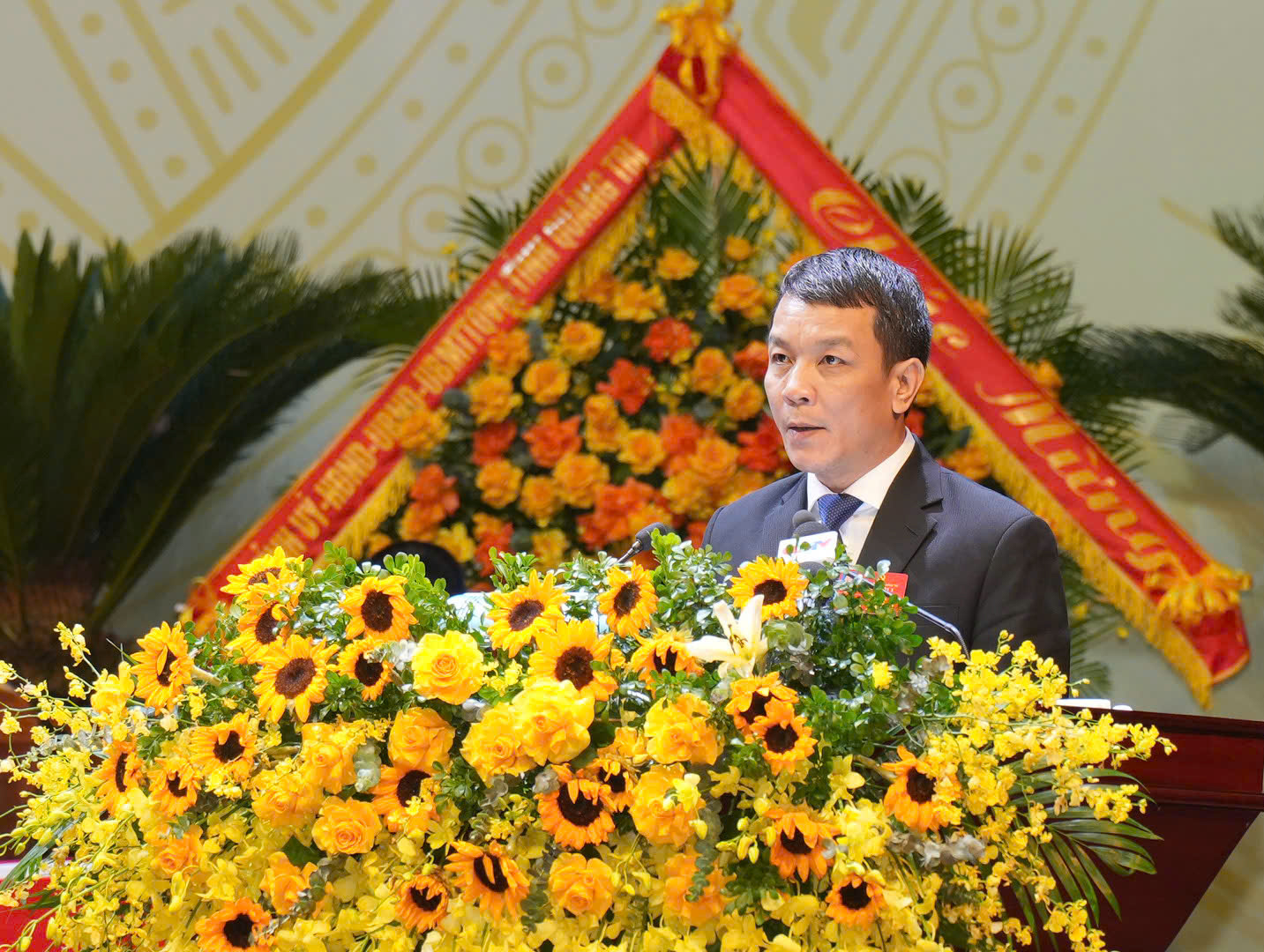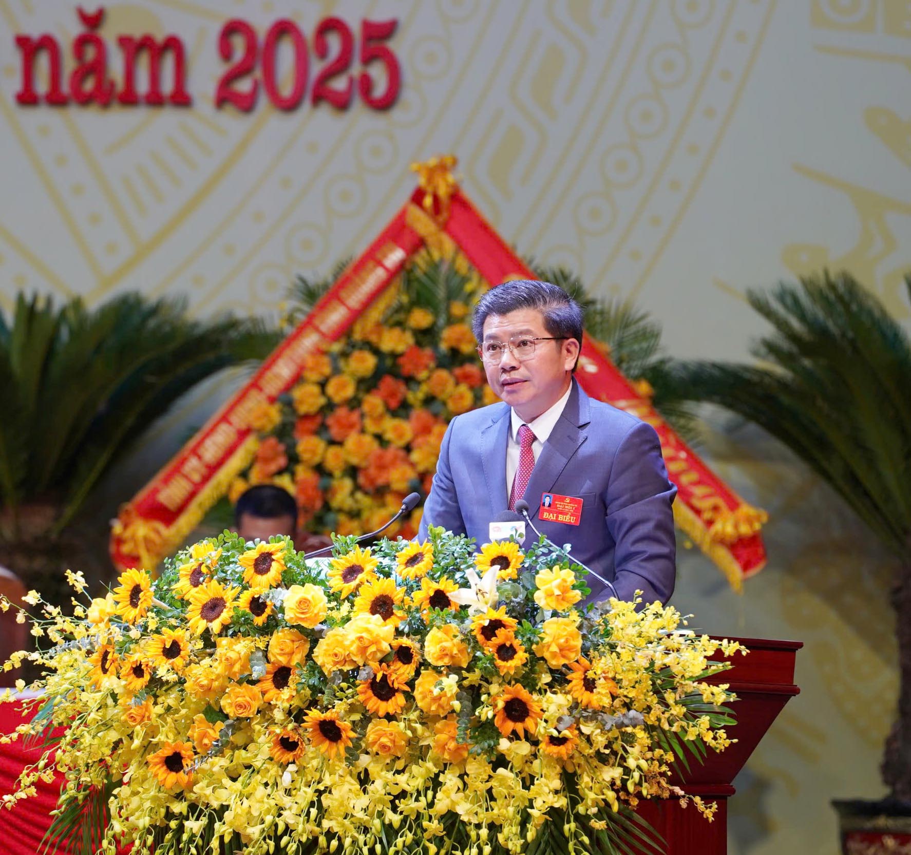 Đồng chí Nguyễn Đăng Quang, Phó Bí thư Tỉnh ủy, Chủ tịch HĐND tỉnh trình bày Báo cáo chính trị trình Đại hội