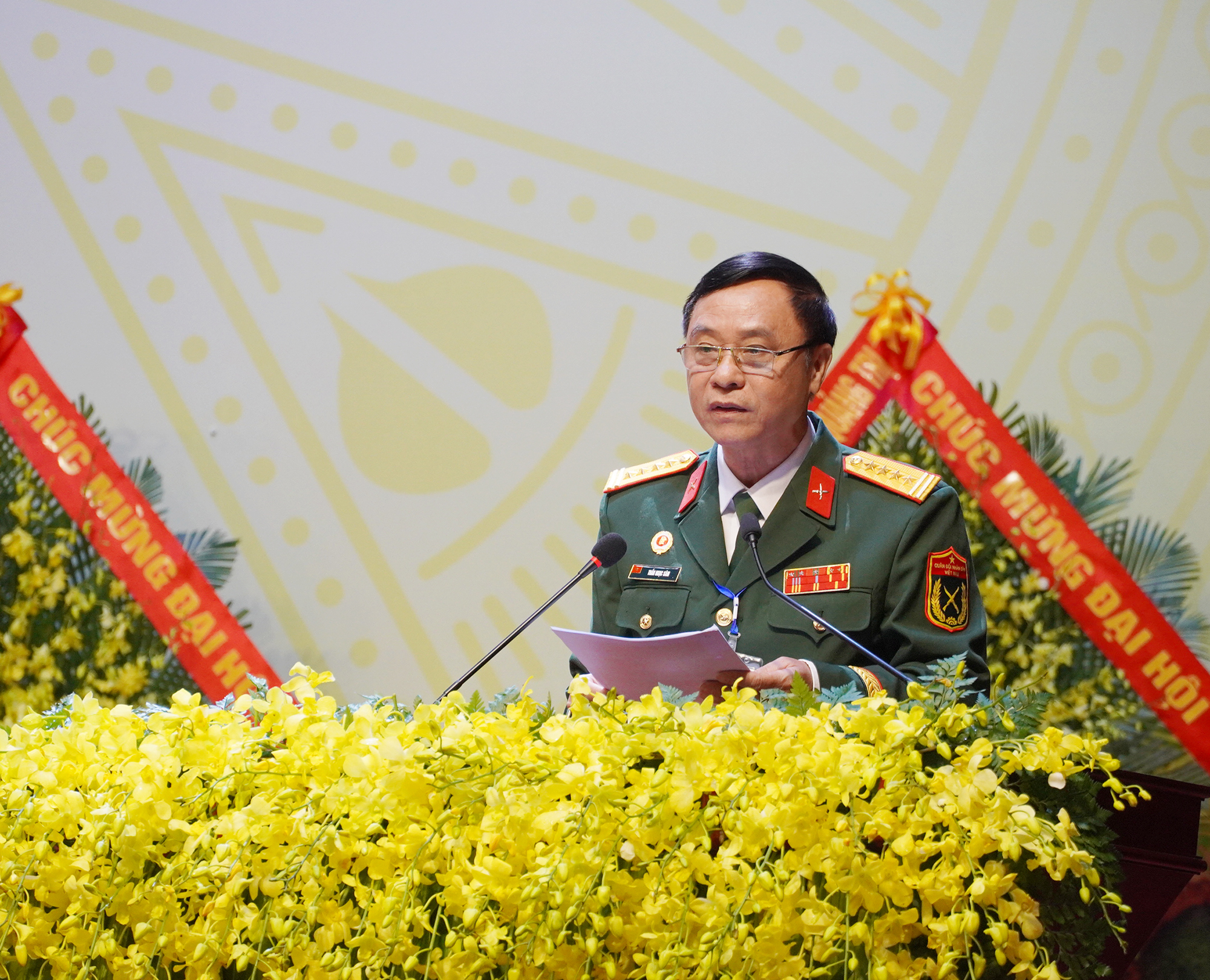 Thượng tướng Bế Xuân Trường, Phó Chủ tịch Ủy ban Trung ương MTTQ Việt Nam, Chủ tịch Hội CCB Việt Nam tặng hoa chúc mừng Đại hội