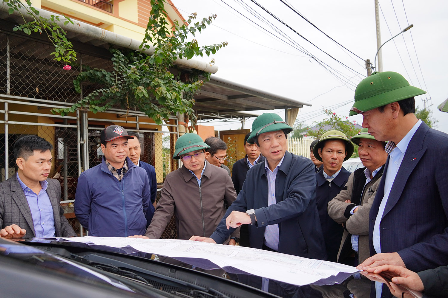 Phó Chủ tịch Thường trực UBND tỉnh Hoàng Nam kiểm tra vị trí dự kiến xây dựng nhà ga và khu tái định cư tại phường Đồng Sơn
