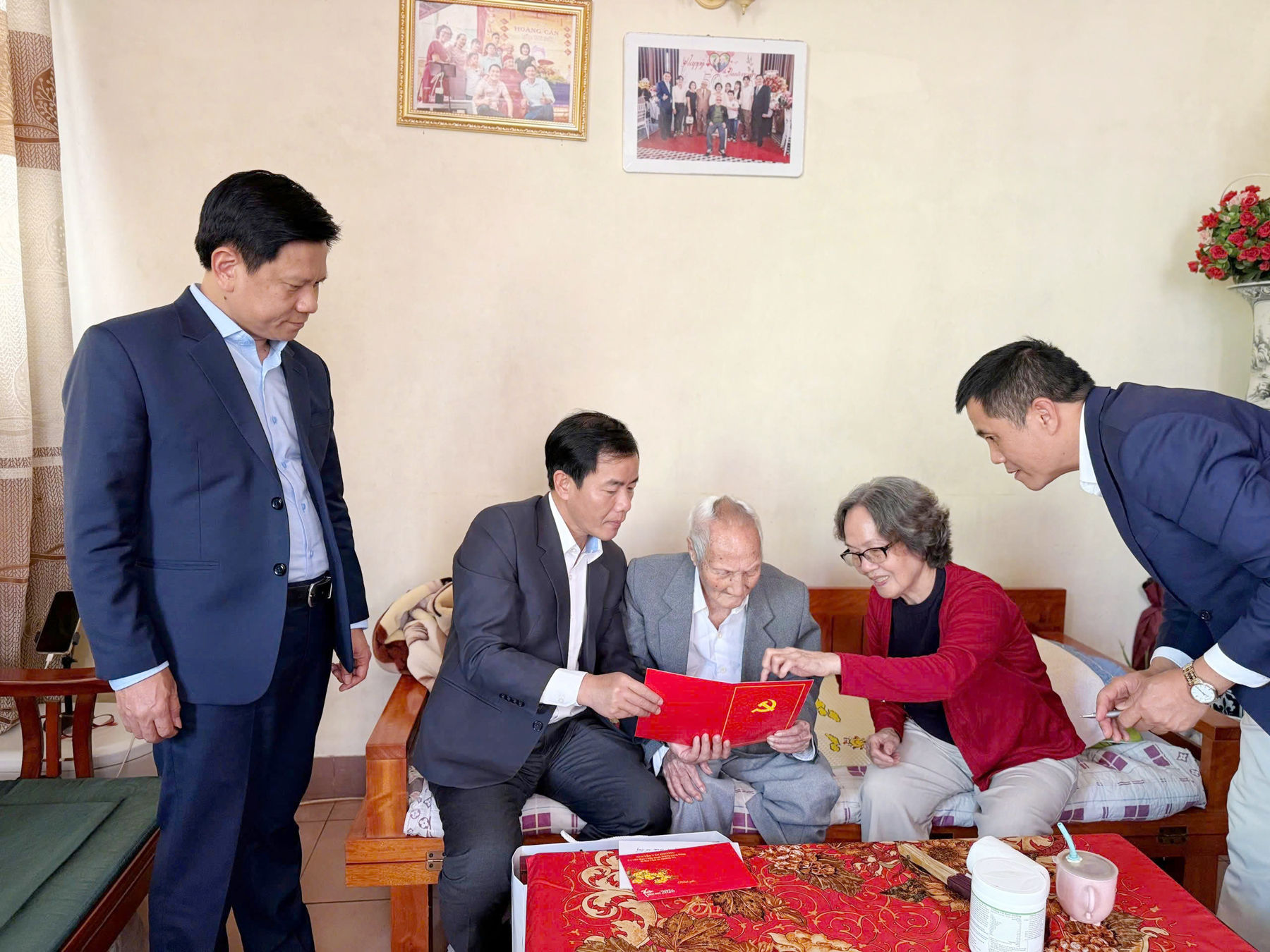 Bí thư Tỉnh ủy Nguyễn Văn Phương thăm, chúc Tết đồng chí Hoàng Cẩn, đảng viên 80 năm tuổi Đảng ở xã Cửa Việt