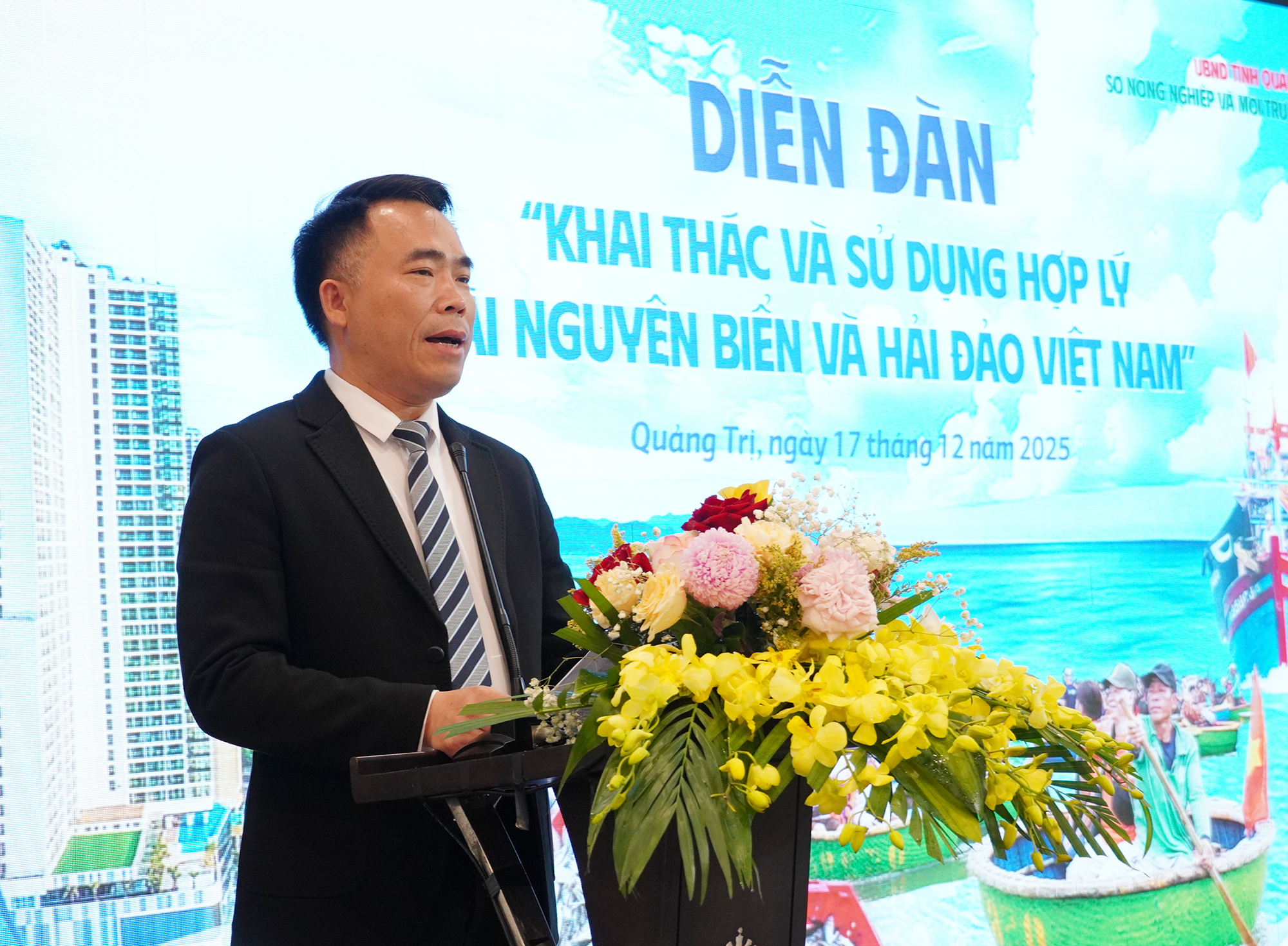 Tại diễn đàn, đồng chí Trần Đình Hiệp, Phó Giám đốc Sở Nông nghiệp và Môi trường tỉnh Quảng Trị cho biết, trong những năm qua, kinh tế biển của tỉnh Quảng Trị đã có bước phát triển đáng ghi nhận; du lịch biển phục hồi nhanh và tăng trưởng mạnh, năm 2025 đón khoảng 9,6 triệu lượt khách, tổng thu hơn 11.000 tỷ đồng. Hệ thống cảng biển được đầu tư đồng bộ, đặc biệt là việc khởi công bến cảng tổng hợp quốc tế Hòn La đón tàu đến 100.000 tấn. Các khu kinh tế ven biển như Đông Nam Quảng Trị tiếp tục thu hút đầu tư, hình thành hệ sinh thái công nghiệp - dịch vụ biển ngày càng hoàn chỉnh.