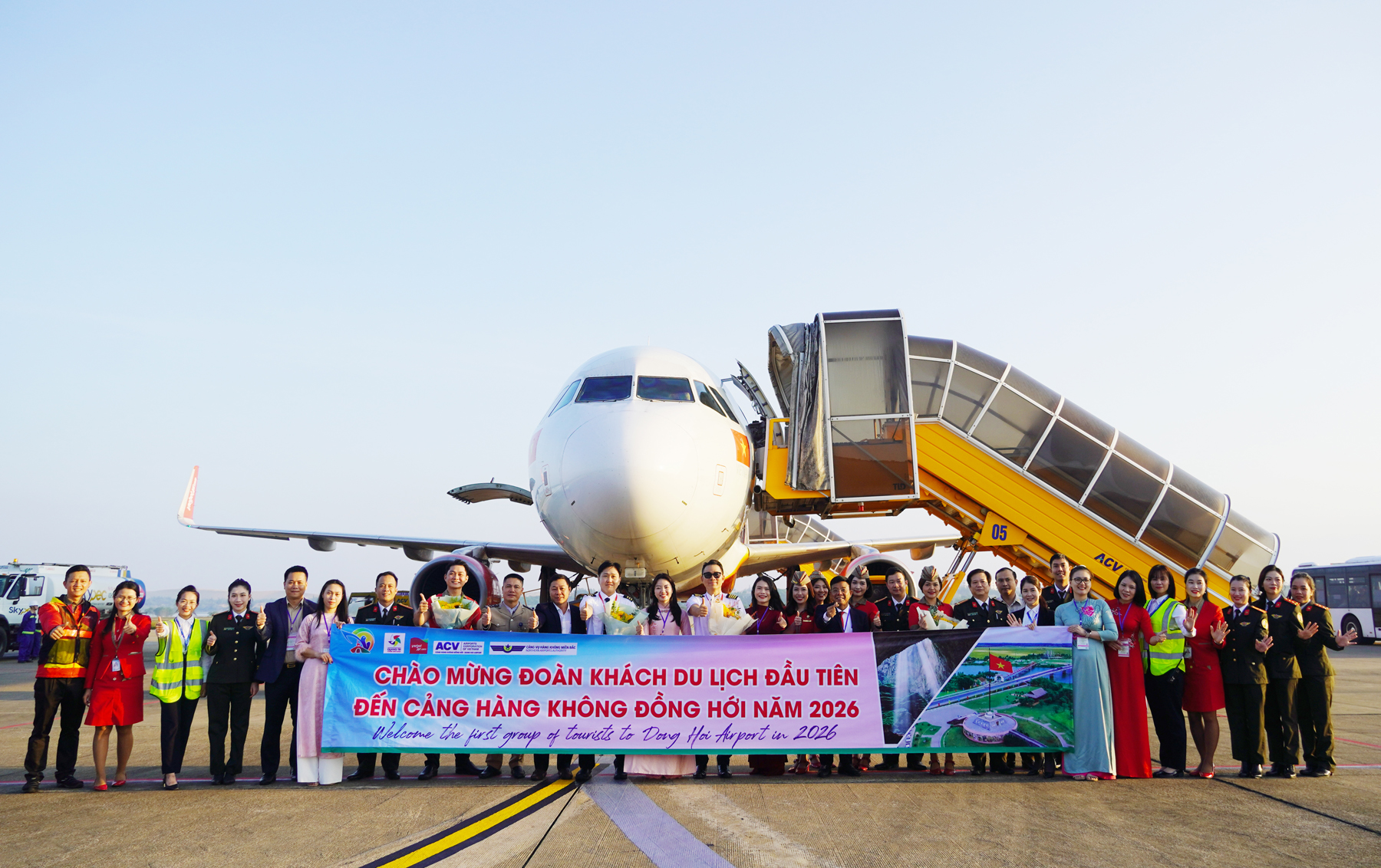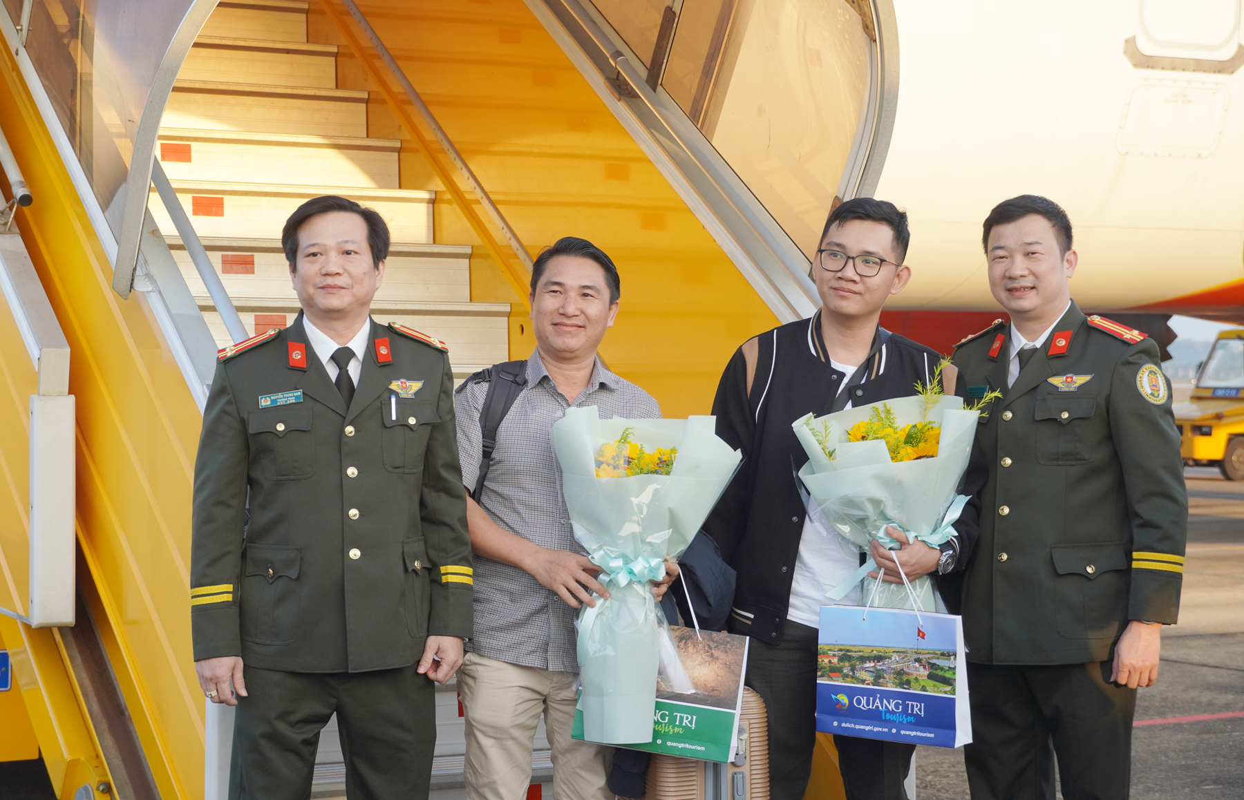 Đại diện lãnh đạo Sở Văn hóa - Thể thao và Du lịch, Trung tâm Xúc tiến du lịch, Hiệp hội Du lịch tỉnh, Phòng Quản lý xuất nhập cảnh (Công an tỉnh), Cảng hàng không Đồng Hới, Cảng vụ Hàng không miền Bắc tại Đồng Hới và Vietjet Air tại Quảng Trị đã tặng hoa, chúc mừng các hành khách cùng phi hành đoàn trên chuyến bay đầu năm mới.