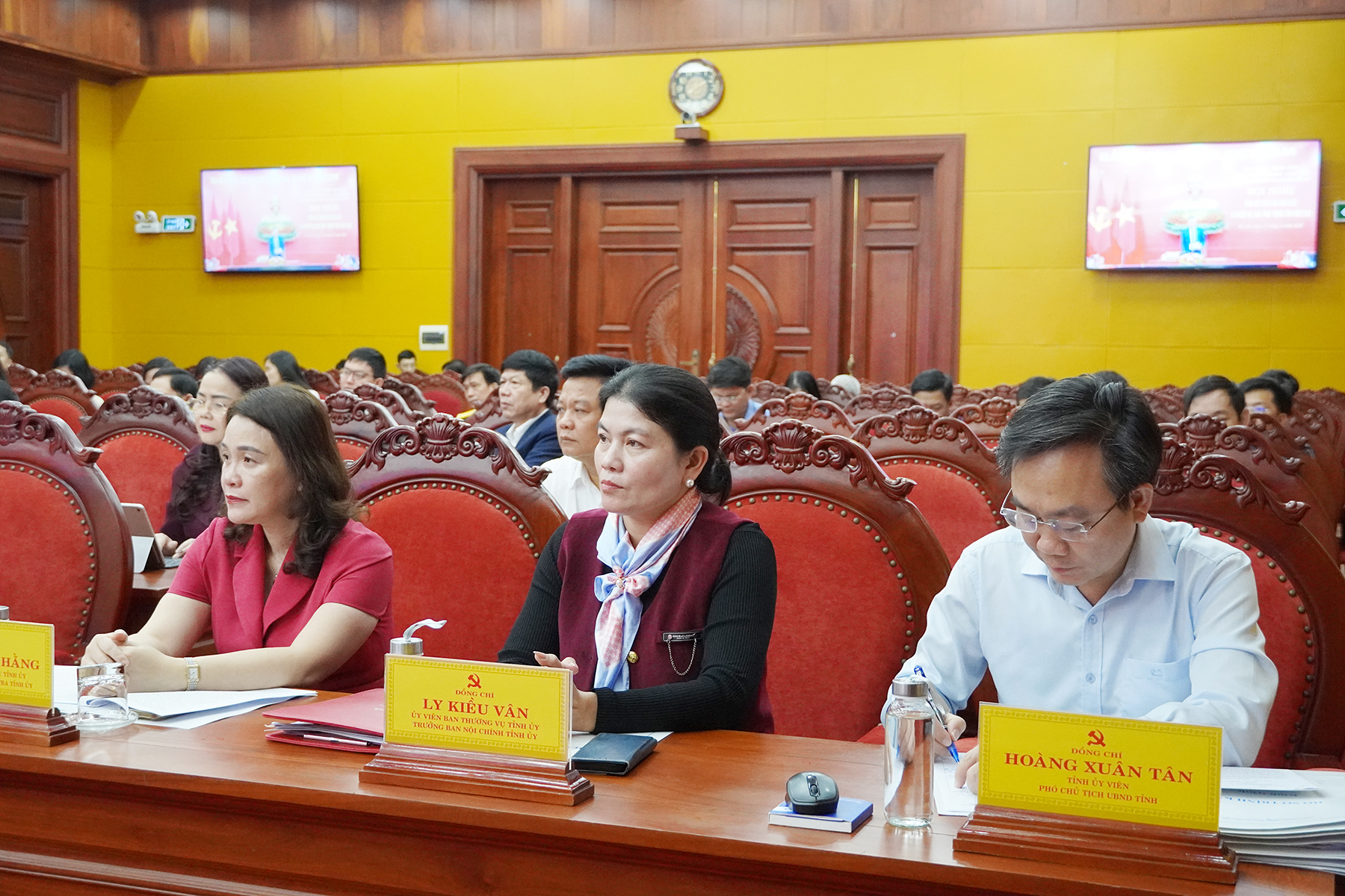 Dự hội nghị tại điểm cầu tỉnh Quảng Trị có đồng chí Nguyễn Văn Phương, Bí thư Tỉnh ủy; đồng chí Trần Vũ Khiêm, Phó Bí thư Thường trực Tỉnh ủy; đồng chí Lê Hồng Vinh, Phó Bí thư Tỉnh ủy, Chủ tịch UBND tỉnh; các đồng chí trong Ban Thường vụ Tỉnh ủy, Thường trực HĐND, UBND, UBMTTQ Việt Nam tỉnh và lãnh đạo các sở, ngành, đơn vị liên quan.