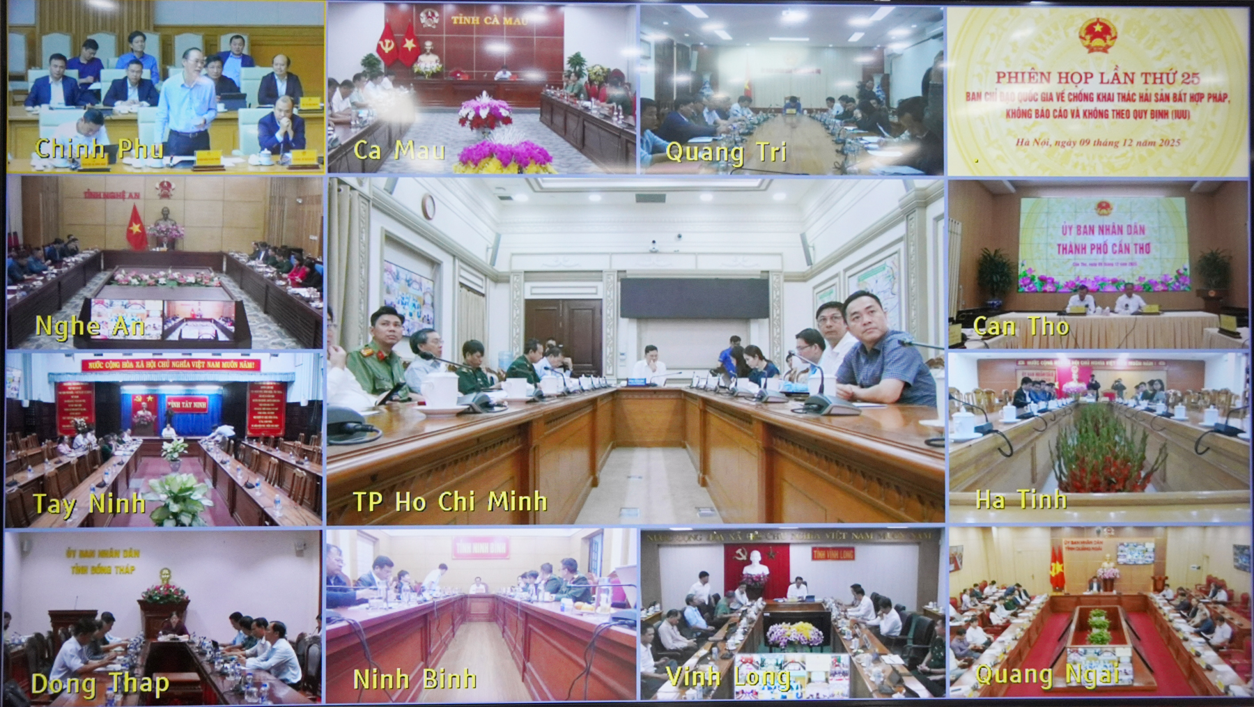 Chiều tối 9/12/2025, Ban Chỉ đạo quốc gia về chống khai thác hải sản bất hợp pháp, không báo cáo và không theo quy định (IUU) tổ chức phiên họp thứ 25. Phiên họp được tổ chức theo hình thức trực tuyến, kết nối từ điểm cầu trụ sở Chính phủ đến 21 tỉnh, thành phố ven biển. Thủ tướng Chính phủ Phạm Minh Chính, Phó Thủ tướng Chính phủ Trần Hồng Hà chủ trì phiên họp. Dự phiên họp tại điểm cầu tỉnh Quảng Trị có Phó Chủ tịch UBND tỉnh Lê Văn Bảo.