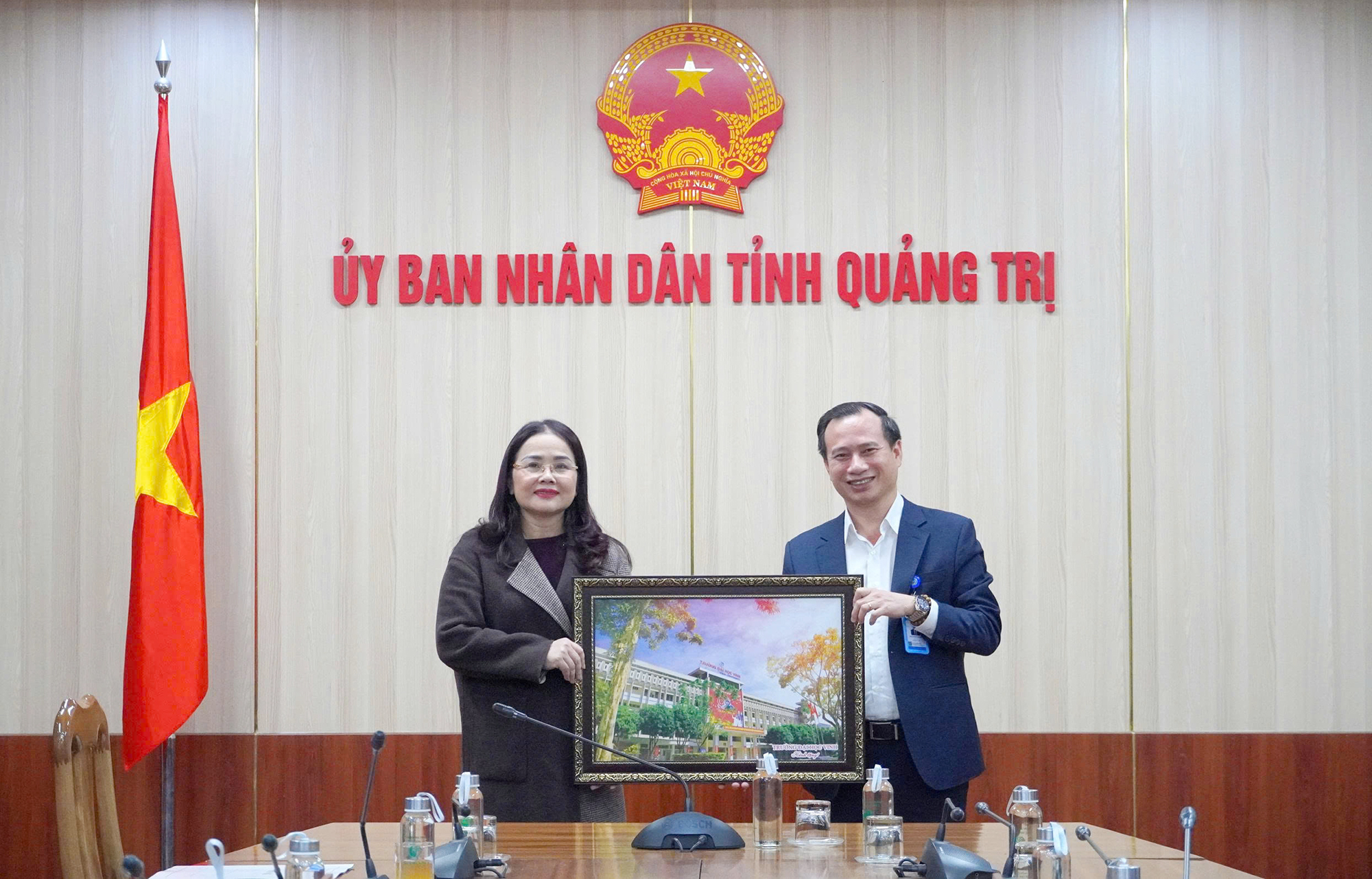 Trường Đại học Vinh tặng quà lưu niệm cho Sở Giáo dục và Đào